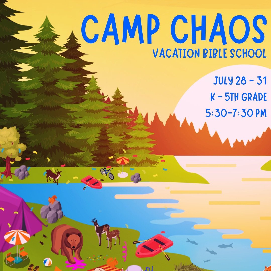 Are you ready for this summer to get a little ... chaotic? Get ready for Camp Chaos VBS! This summer, you can spend a few days at a campsite in the forest. But watch out -- things are starting to get a little crazy at Camp Chaos!